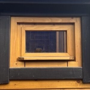 Деревянная дверь 1640x605мм с окошком правая (петли справа)